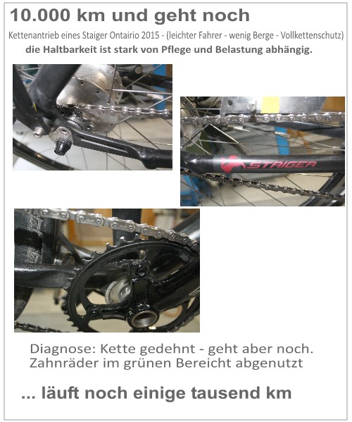 Haltbarkeitsbeispiele von Riemenantrieben Ehrlicherweise muss ich erwähnen, dass ein Riemenantrieb bei korrekter Einstellung und guter Pflege SEHR lange halten kann. Ich habe inzwischen auch Riemen, die über 30.000 km gehalten haben.