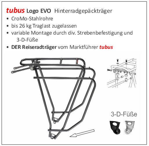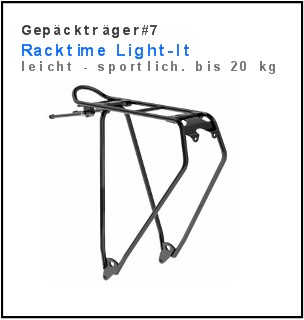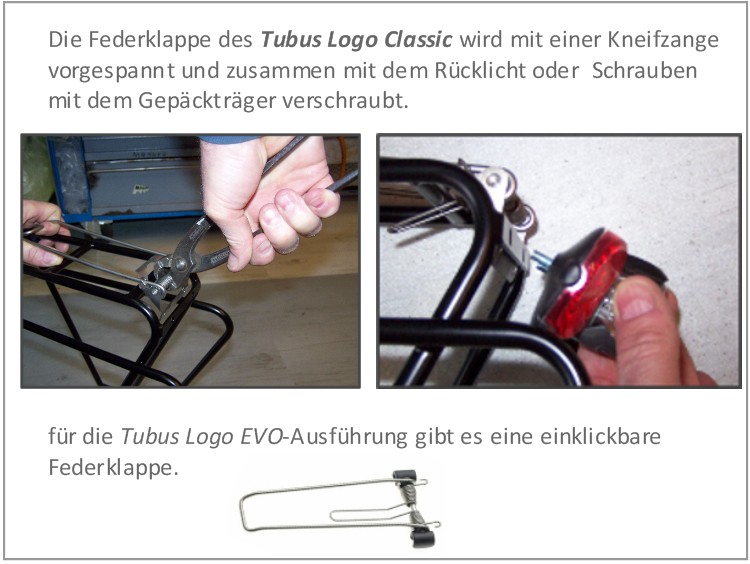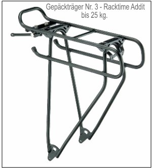 Gepäckträger-Montage bei seitlichen Gewindeösen. Je nach Rahmenform ist es von Vorteil, die Streben zurecht zu bieten (siehe Abbildung)