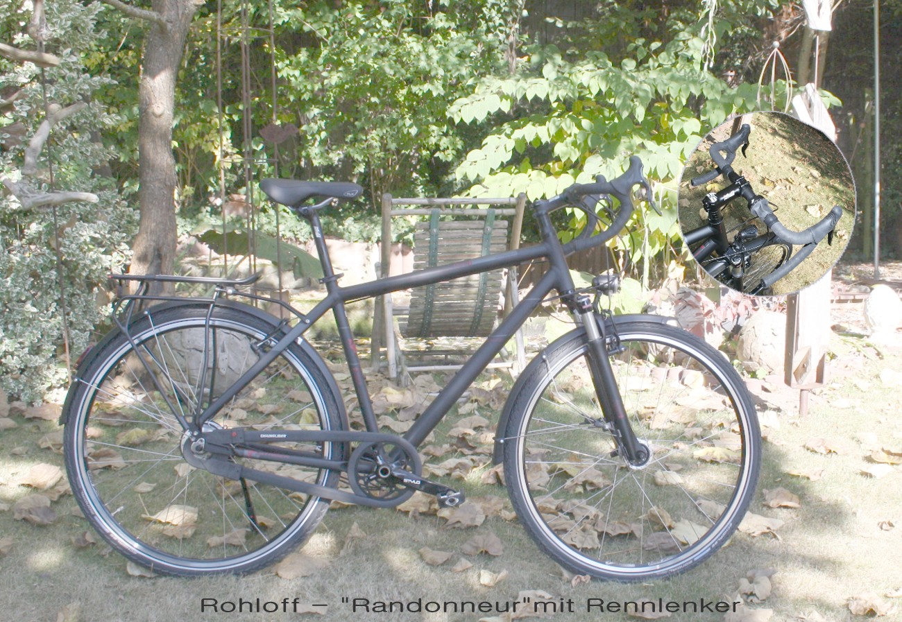 ![]() Sonderumbau - Staiger Ontarion zum Randonneur mit Rennlenker. Drehgriff mit Rennlenker war zwar ein Kompromiss, aber mangels anderer Möglichkeiten ein guter Kompromiss für Rennlenker-Liebhaber. Seit es die Tout Terrain Cinq Shift:R Road für Rennlenker gibt, biete ich diese Möglichkeit nicht mehr an. ![]() hier als Crossrad in div. Ausführungen ![]() ![]() ![]() |