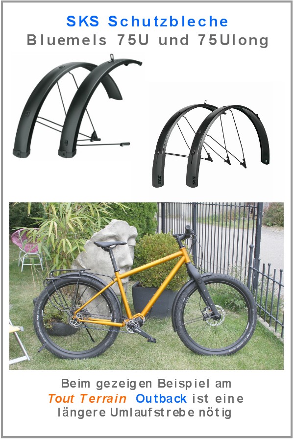 Das Tout Terrain Outback ist ein Mountainbike. Die Montage von festen Schutzblechen ist - im Gegensatz zu "normalen" Mountainbikes - möglich (aber ungewöhnlich und relativ aufwändig)