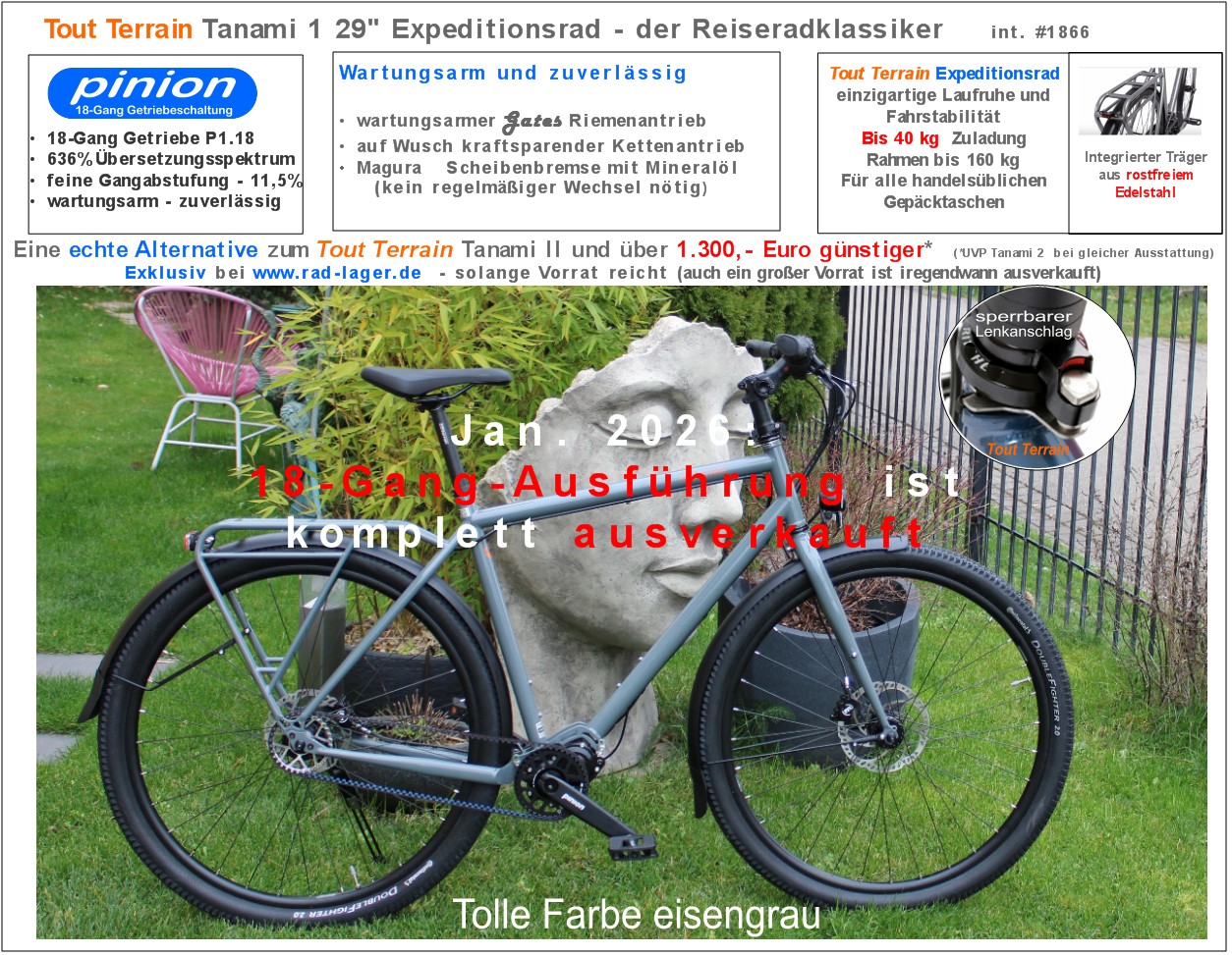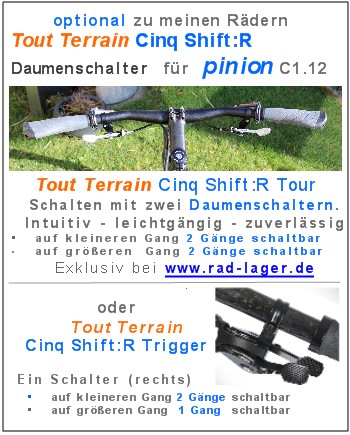 Startseite: » ✅ Pinionräder » ✅ mein . Bestseller - nur noch 2 RH vorrätig - Tout Terrain Tanami Xplore #1266 1866 Exklusivmodell von www.rad-lager.de opt. Daumenschalthebel