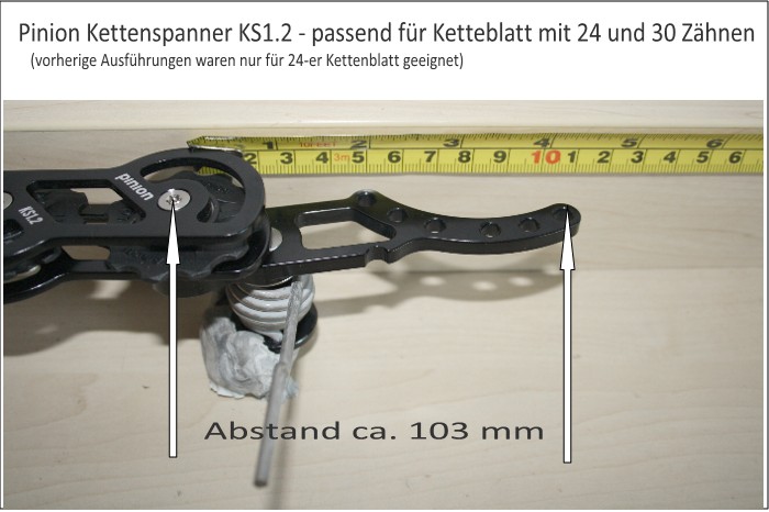 Montiert war der Pinion Kettenspanner KS1.2 - dafür gibt es noch Ersatzteile (Feder, Rollen...)